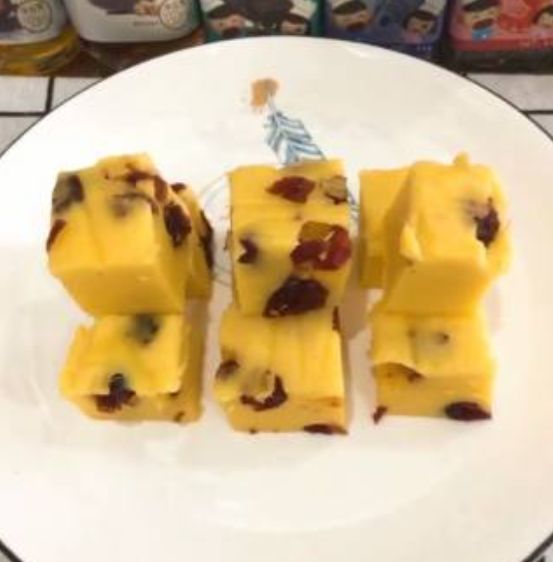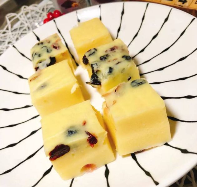 ④模具方的圆的都行,只要是耐高温的,比如饭盒、碗都行,除了加蔓越莓干,还可以加葡萄干、各种坚果干、果脯都可以。