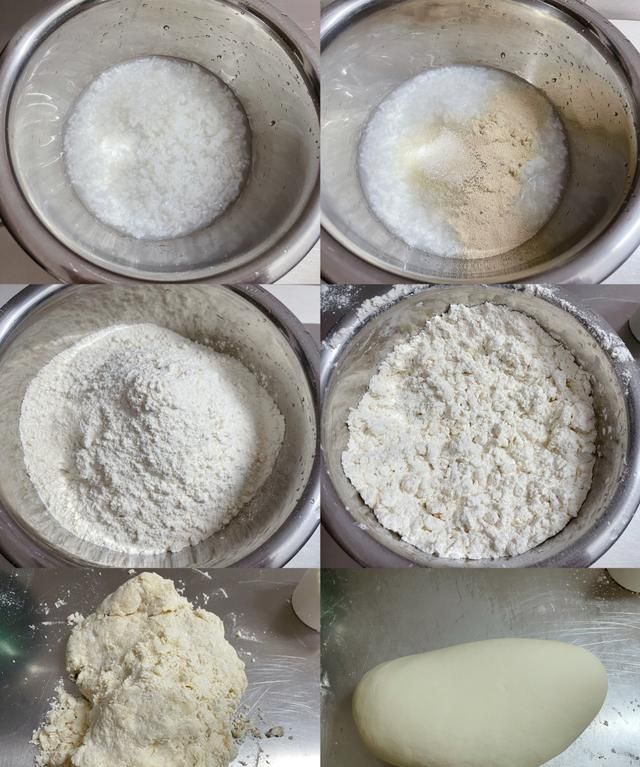 材料:白粥340克,白糖40克,酵母6克,面粉600克